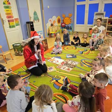 Dnia 15 grudnia 2025 dzieci z grupy II wzięły udział w warsztatach mikołajkowych,które przeprowadziły Panie Bibliotekarki z Filii nr 12 Miejskiej Biblioteki w Kielcach.