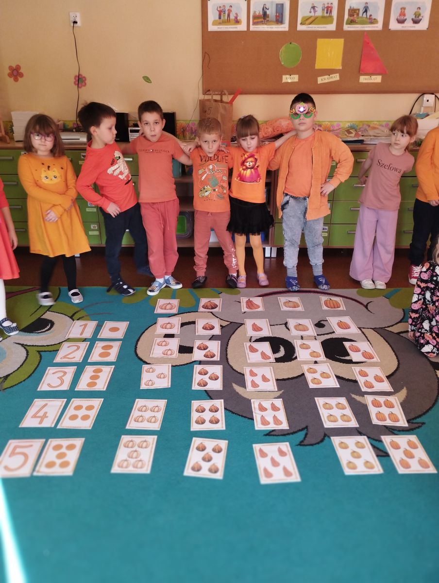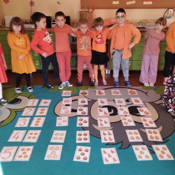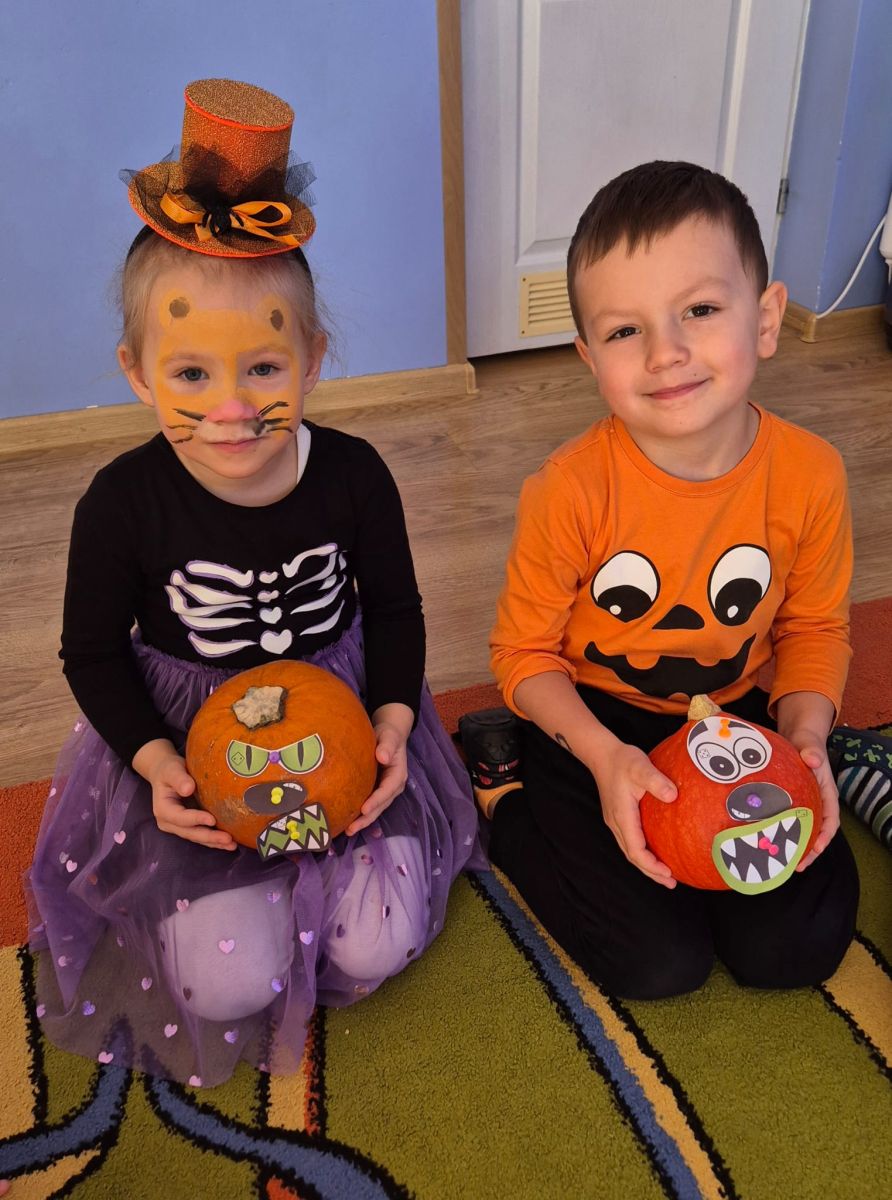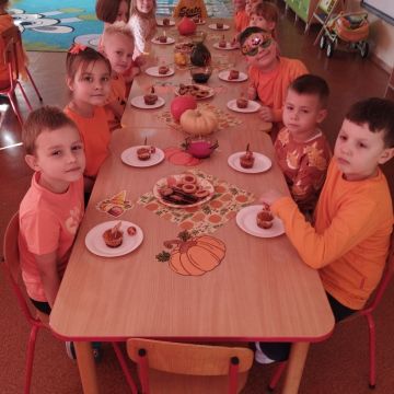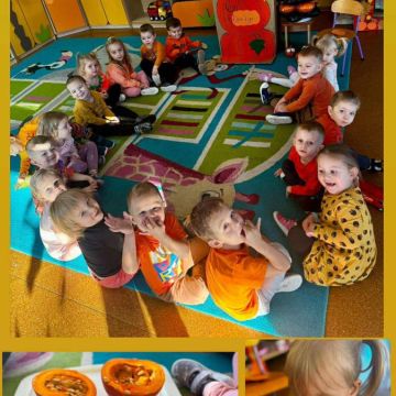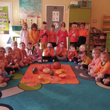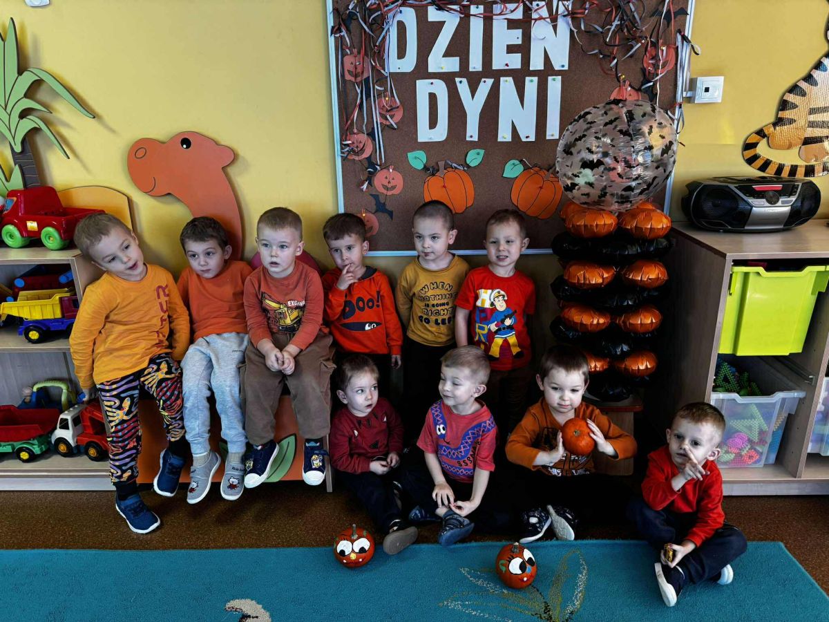 Dzieci przyniosły do przedszkola dynie i ubrały się w odzież w kolorze pomarańczowym. Dzień Dyni pozwolił nam poznać wielką różnorodność dyń i wzbogacił naszą wiedzę na ich temat. Wzięliśmy udział w licznych zabawach z dynią w roli głównej. Były „dyniowe” zawody, dyniowe kodowanie, skoki przez dynię, toczenie jej, a nawet „dyniowe” tańce. Dzieci spełniały się również kulinarnie przez co nie zabrakło degustacji potraw z dyni.