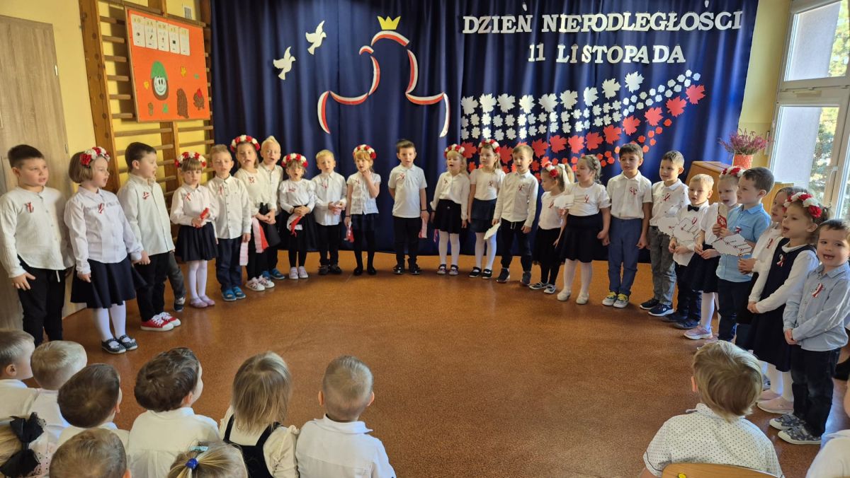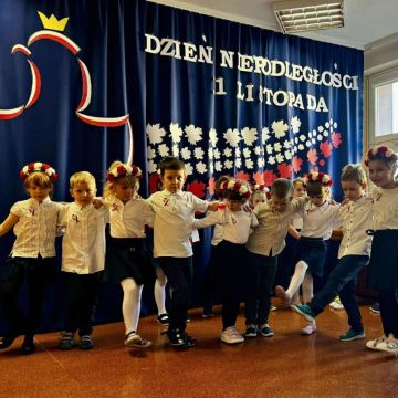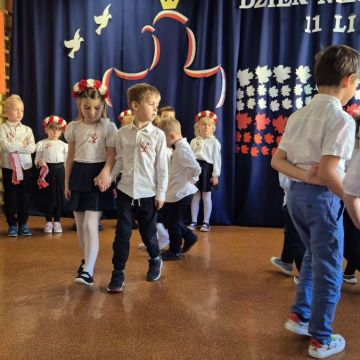 Dnia 7 listopada 2025 roku w naszym przedszkolu odbyła się uroczysta Akademia z okazji Święta Niepodległości. Dzieci z grupy IV i V pod opieką pani Iwony Bożęckiej oraz pani Karoliny Przygody przybliżyły wszystkim zebranym przedszkolakom losy naszego kraju kiedy to został podzielony przez Rosję, Austrię i Prusy. Nasi artyści zaprezentowali montaż słowno- muzyczny oraz układy taneczne zawierające elementy tańców narodowych takich jak: Polonez, Kujawiak, Oberek i Krakowiak.