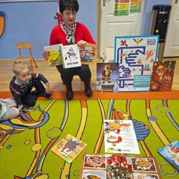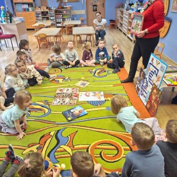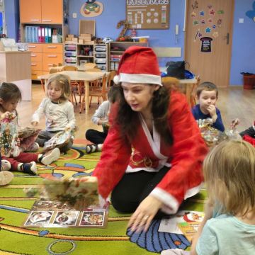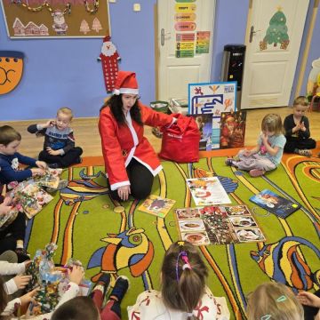 Dnia 15 grudnia 2025 dzieci z grupy II wzięły udział w warsztatach mikołajkowych,które przeprowadziły Panie Bibliotekarki z Filii nr 12 Miejskiej Biblioteki w Kielcach.
