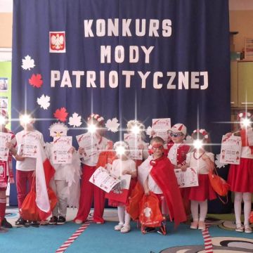 Dnia 29 kwietnia 2026 r. w naszym w naszym przedszkolu odbył się konkurs pt. Pokaz mody patriotycznej, w którym udział wzieło po dwoje dzieci z każdego oddziału. Przedszkolaki ubrane w stroje w barwach narodowych lub innych, nawiązujące w swojej estetyce do polskiej kultury lub historii, zaprezentowały się na biało-czerwonym wybiegu. Wydarzenie to było bardzo ekscytujące dla dzieci i sprawiło im wiele radości. W pokazie udział wzięli:
