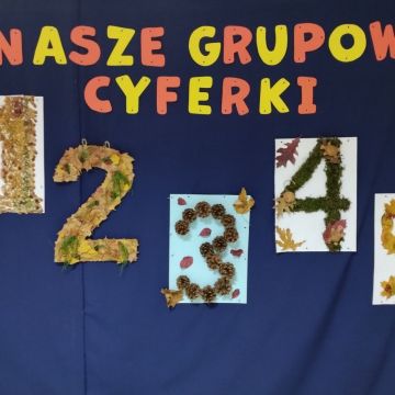 Jesień to niezwykła pora roku. Pełna kolorów, zapachów, inspiracji. W ramach zajęć plastyczno - technicznych dzieci wykonały cyferki z jesiennych darów natury. Do pracy wykorzystano liście, szyszki, mech, żołędzie, jarzębinę i inne skarby zebrane podczas spacerów. Każda cyfra była wyjątkowa – tworzona z wyobraźnią i starannością. Dzieci nie tylko rozwijały swoje umiejętności manualne, ale także utrwalały znajomość cyfr, ćwiczyły cierpliwość, precyzję i współpracę w grupie. Efekty naszej pracy, to prawdziwe, jesienne arcydzieła! Kolorowe, pomysłowe i pełne radości prace - wspaniale pokazują, jak wiele piękna można zaleźć w naturze.